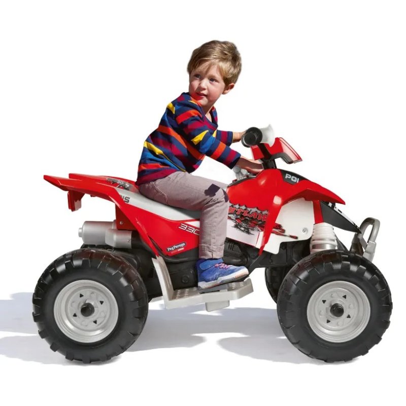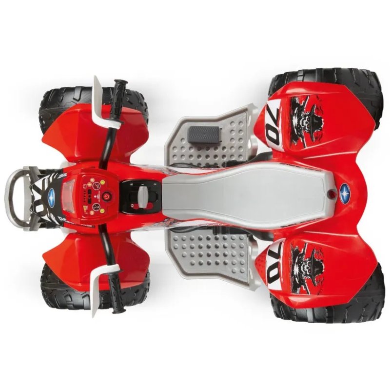 Lige så god som en rigtig quad! Kofangere, mudderklapper, fodstøtter og masser af kørekomfort takket være et rummeligt sæde og skridsikre håndtag.