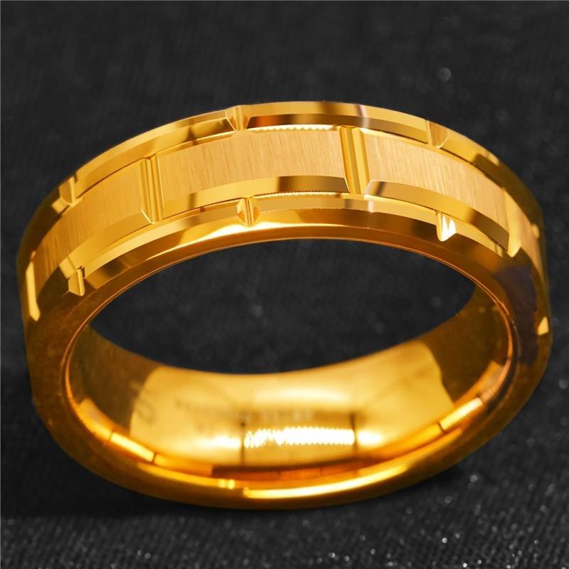 Fingerring til mænd gylden farve snitmønster 8 mm