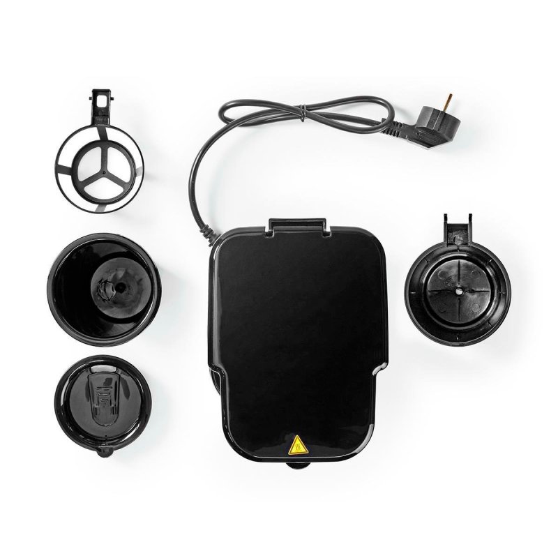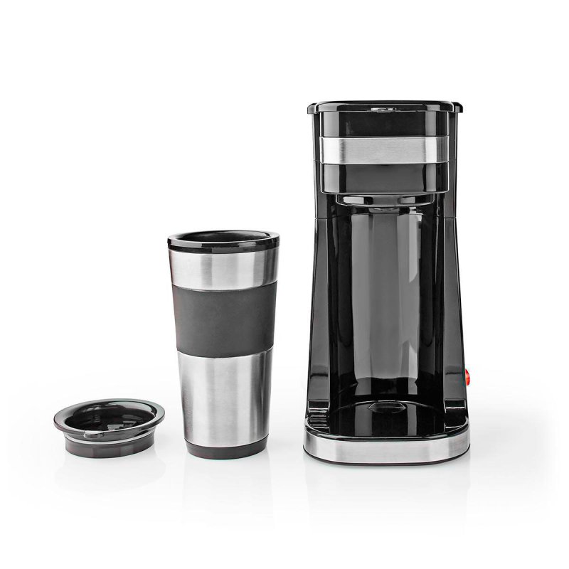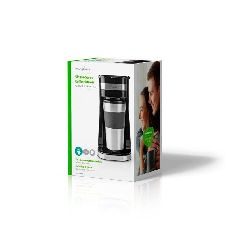 Kaffemaskinen laver en portion kaffe (0,42 liter), der netop passer til at fylde det medfølgende rejsekrus.