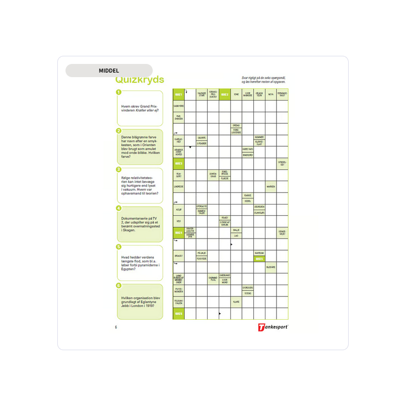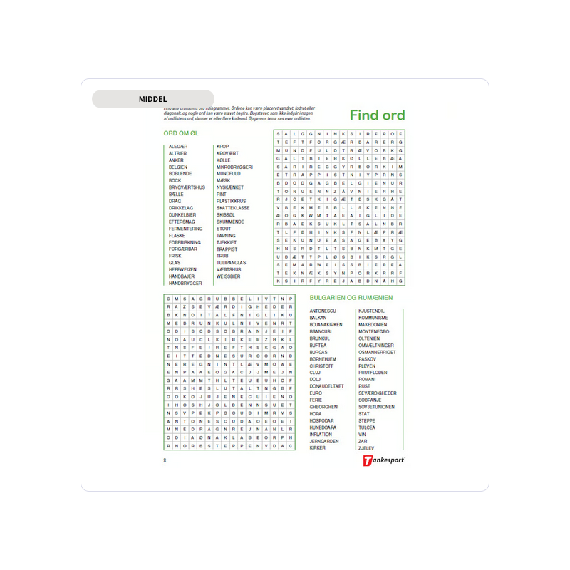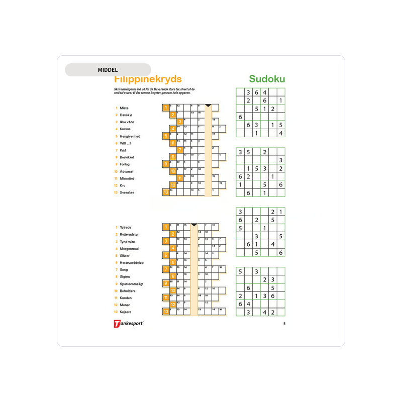 Her finder du Krydsogtværsopgaver, Find ord, Filippinekrydser og mange andre typer. Sværhedsgraden varierer undervejs, uden at det hverken bliver helt let eller meget svært.