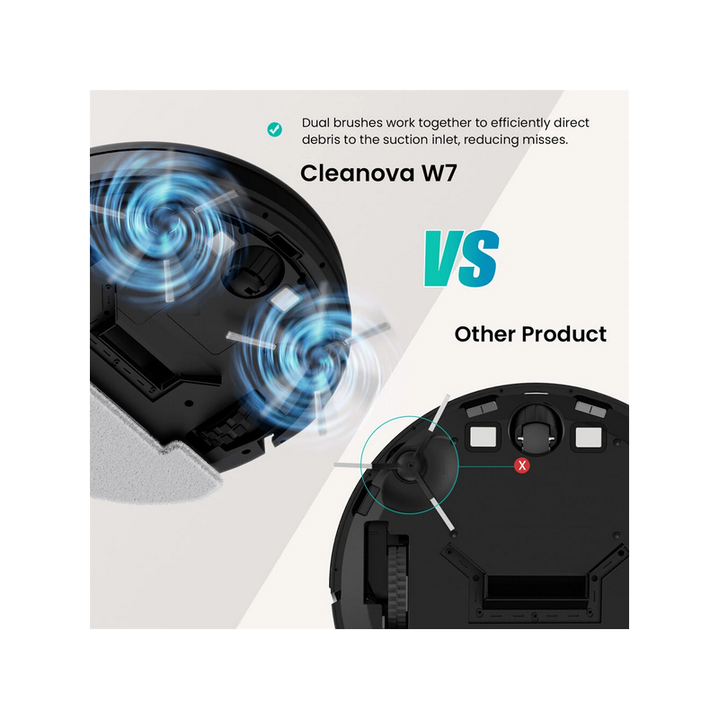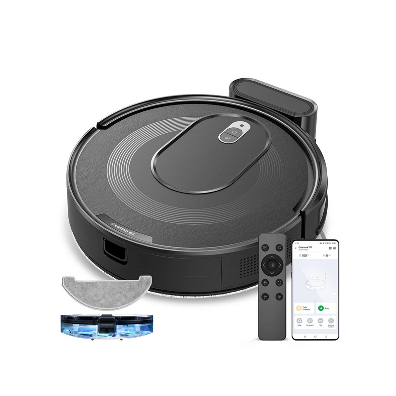 Vactidy Cleanova W7 robotstøvsuger, 4000Pa kraftfuld sugeevne, 2-i-1 støvsuger og moppe, 120 minutters driftstid, smart app og stemmestyring, multisensornavigation, automatisk genopladning