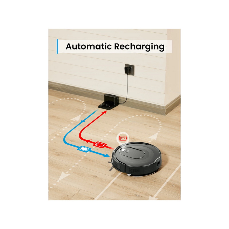 Rengør kontinuerligt i op til 120 minutter på en enkelt opladning. Vender automatisk tilbage til genopladning, når batteriet er lavt, og genoptager rengøringen bagefter.