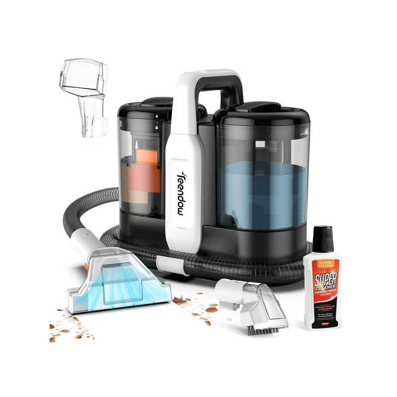 Teendow C5 500W bærbar tæpperenser støvsuger 11kPa pletrenser til tæpper og sofa pletfjerner til kæledyr med dobbelt vandtanksystem