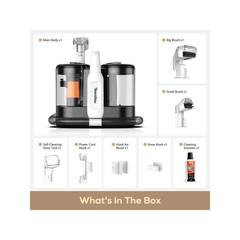 - Dobbelt vandtanksystem: Med en stor 1500ML renvandstank og en 800ML snavsvandstank kan du rengøre større områder med færre afbrydelser, hvilket giver en mere effektiv og uafbrudt rengøringsoplevelse.